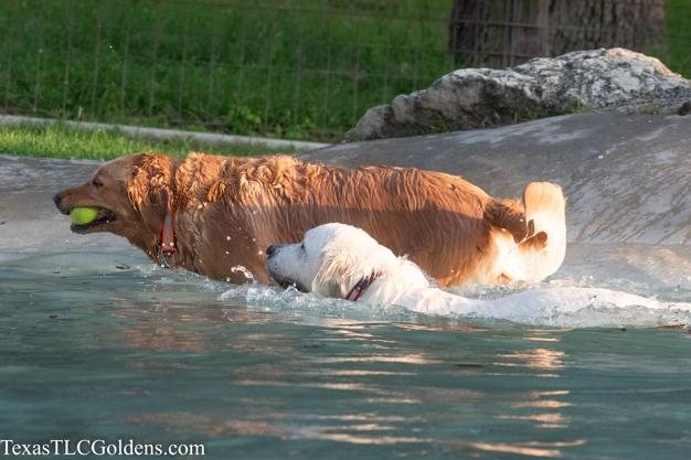 Harley has a knack for playing at the proper level with whatever dog she plays with. Her litter mate River has a lifelong heart condition (not genetic) and tends to tire easily. Harley knows this and plays easier with him and is willing to stop when HE wants to. When playing with puppies that are just a few months old, she plays very gently with them. When she plays with Emma or Dexter our brothers standard poodle, it’s full blast energetic play complete with zoomies. This sort of behavior shows amazing empathy for a dog and we love that about her.