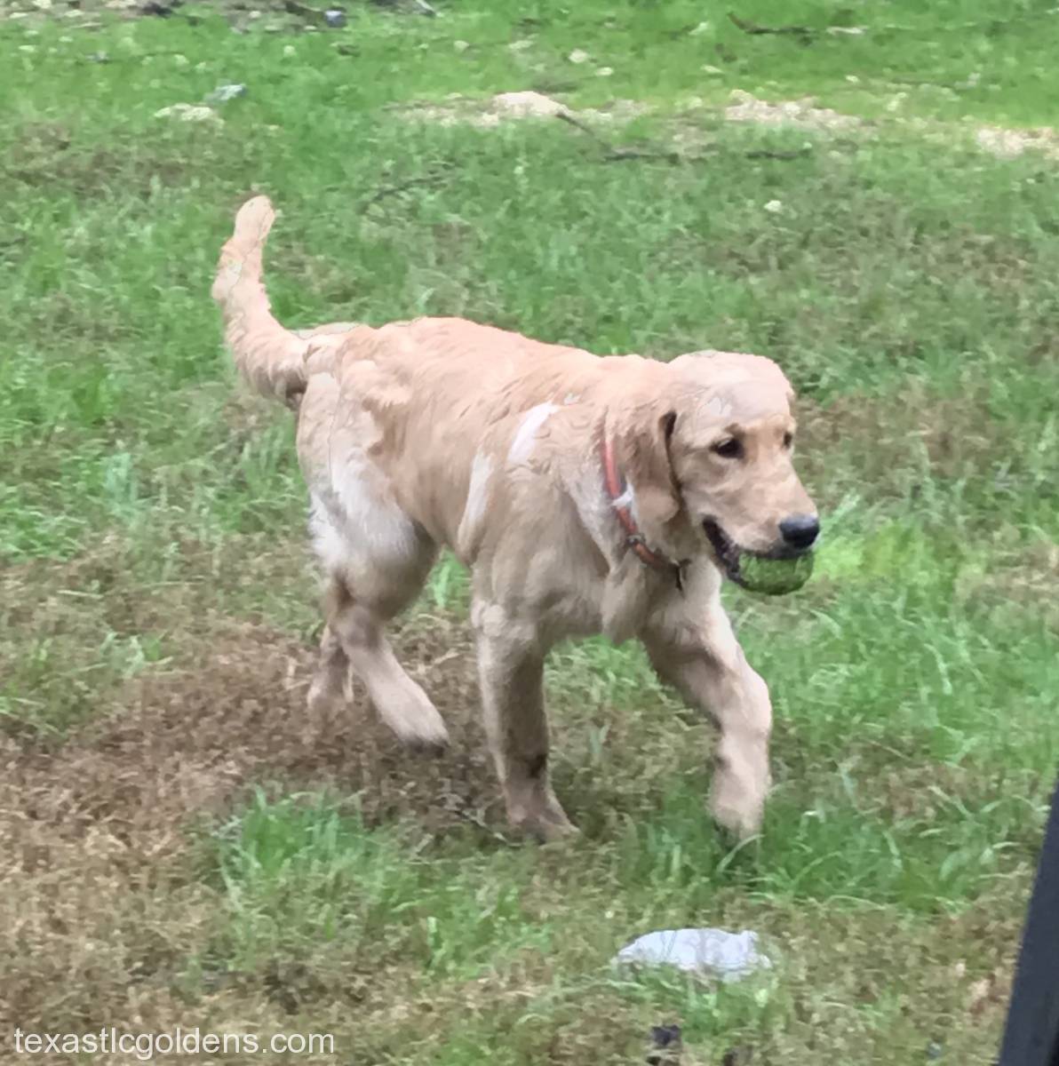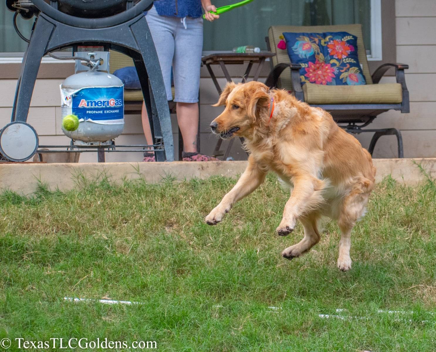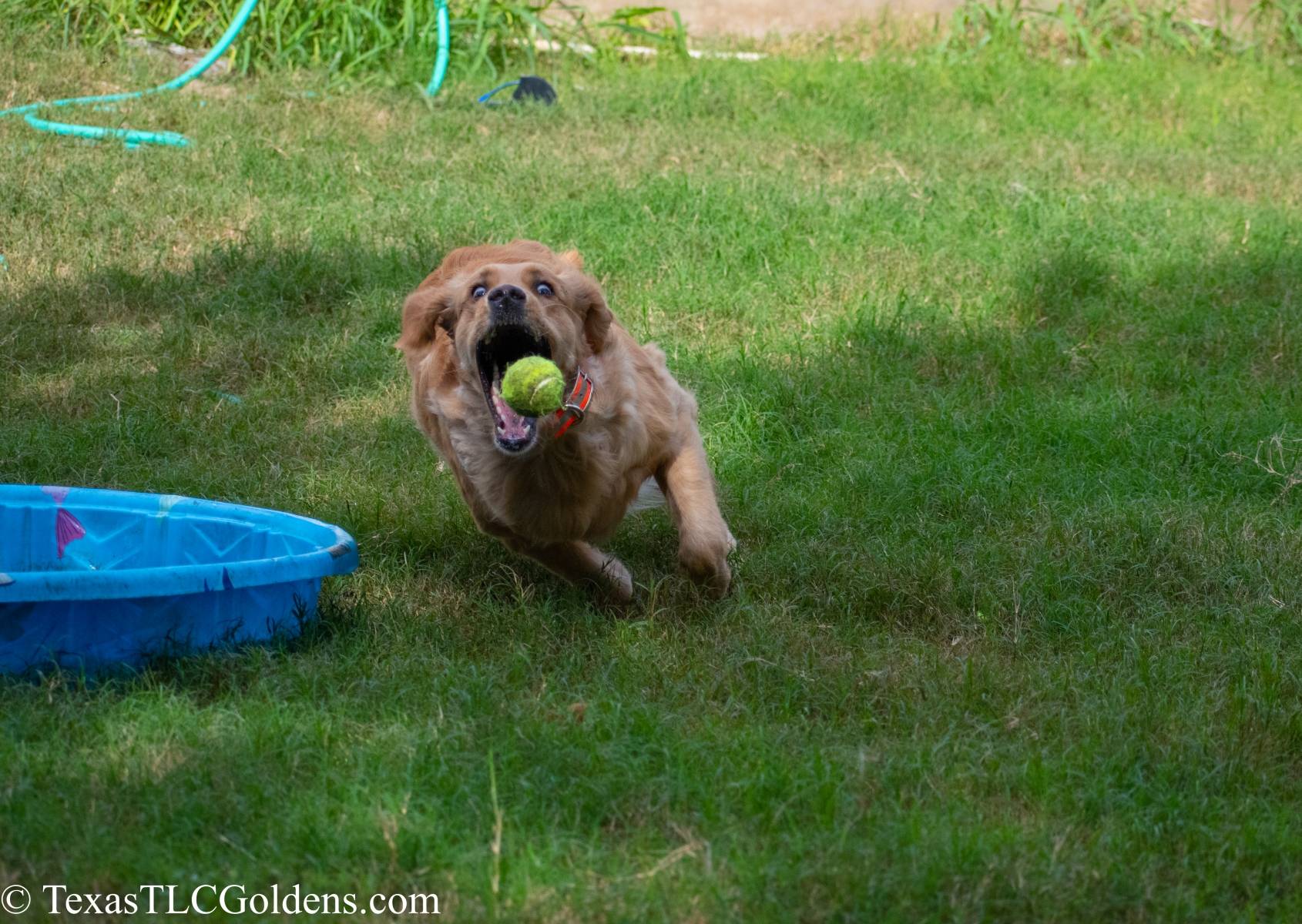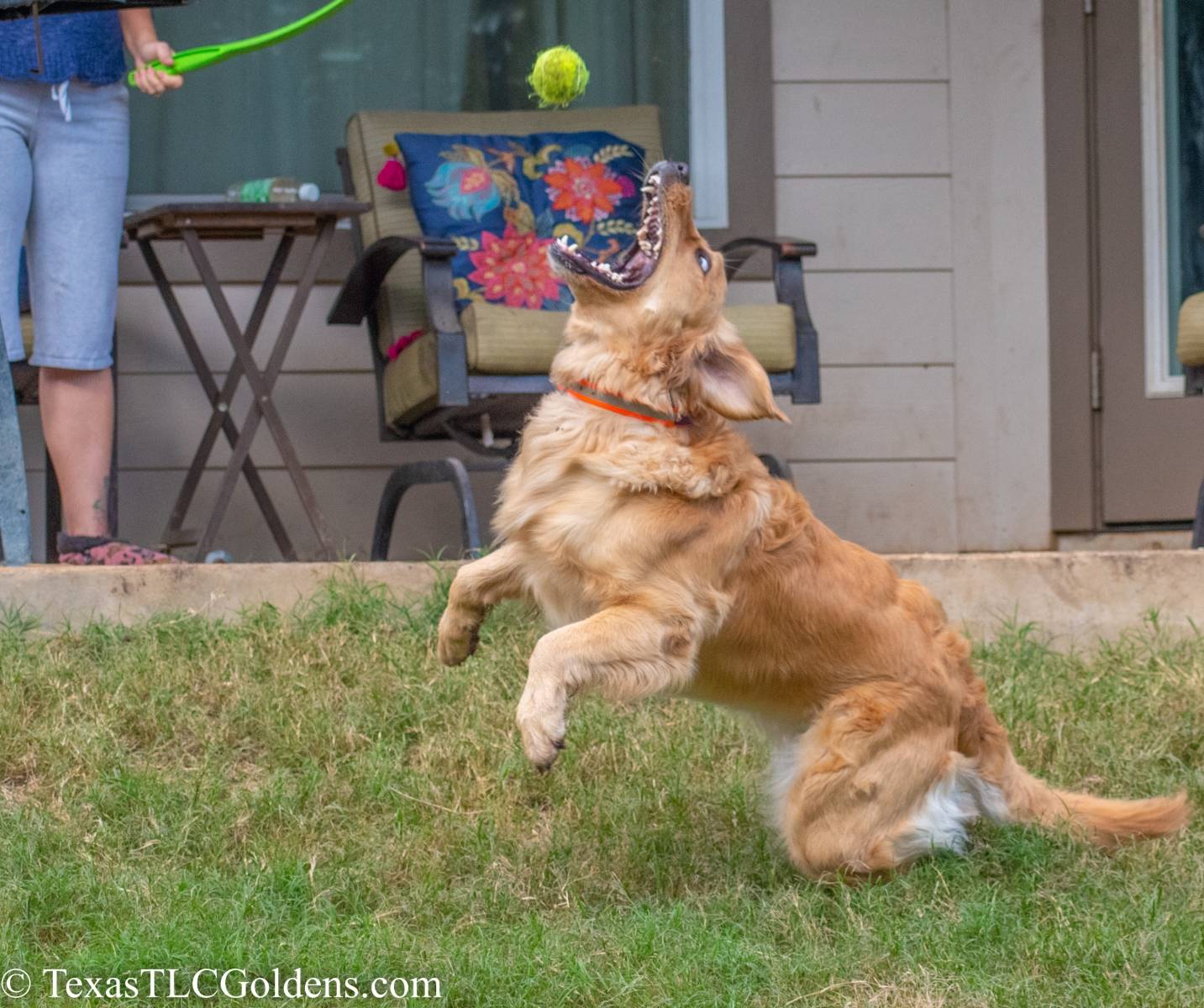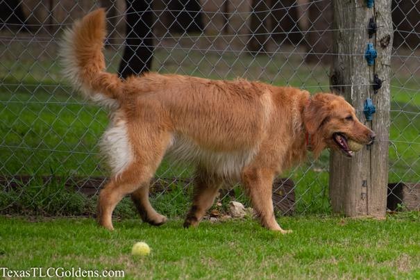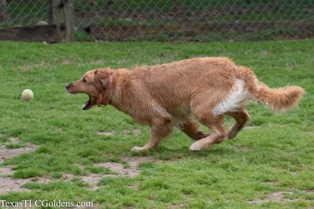 She is genetically clear, has OFA hip, elbow, heart and eye clearances and has always remained healthy. She is athletic and ball focused like no other dog we have ever seen; she lives to chase tennis balls. If it is cool outside, it’s unlikely the human throwing the ball will be able to last as long as she does. She still loves playing in the Texas heat but like any other long haired dog, she takes sensible breaks. She is very good at catching tennis balls in the air and in fact prefers that. If by chance she loses a thrown ball in the grass, it’s amazing to watch her automatically set up a search grid and find it by smell.
