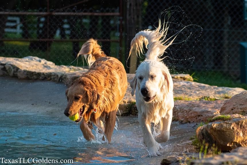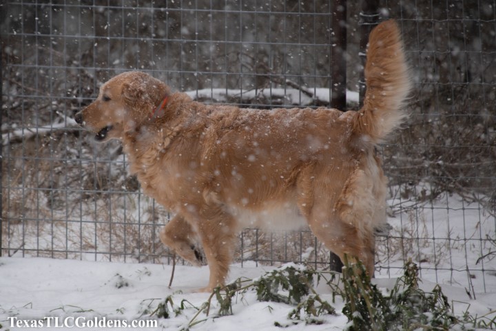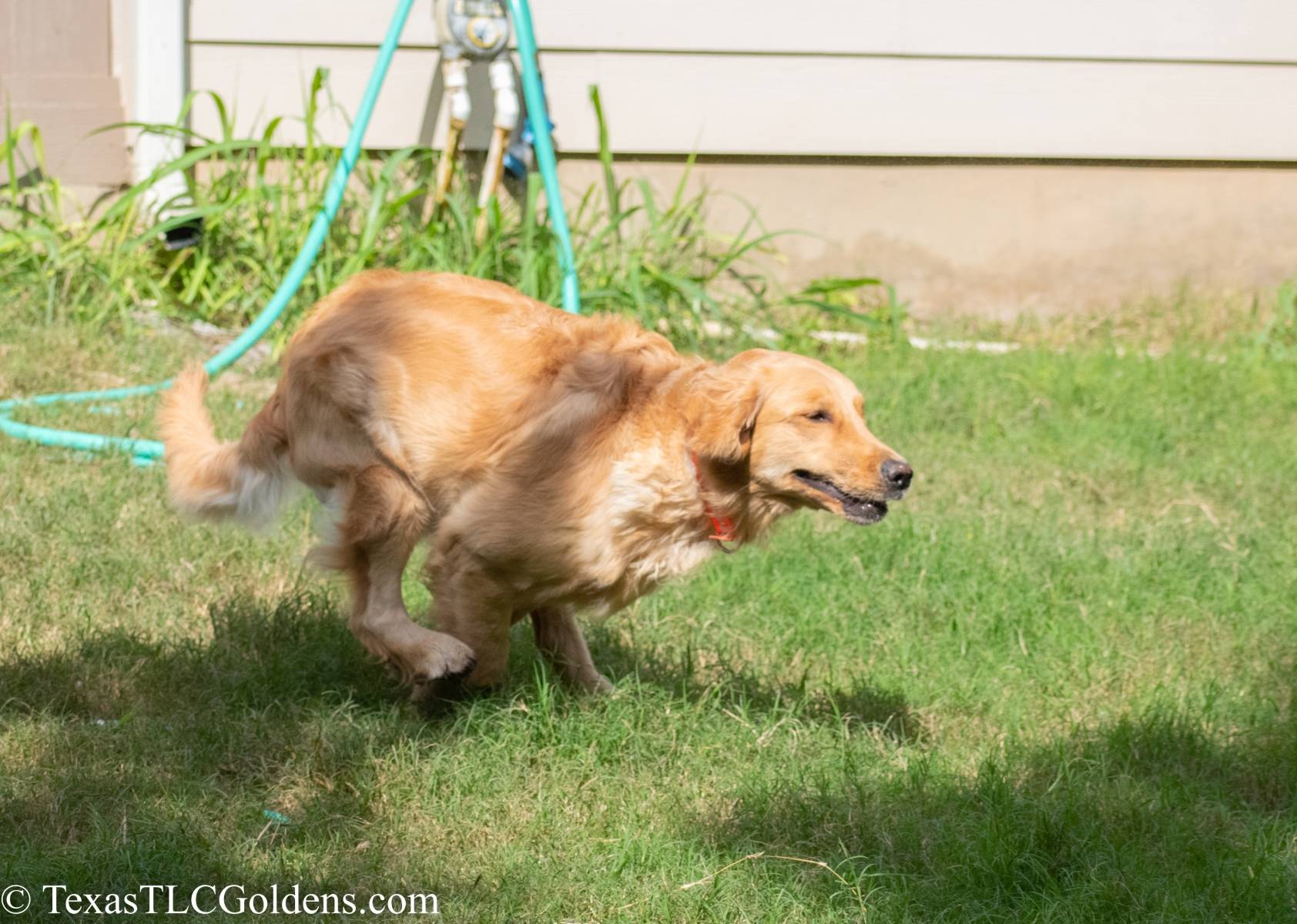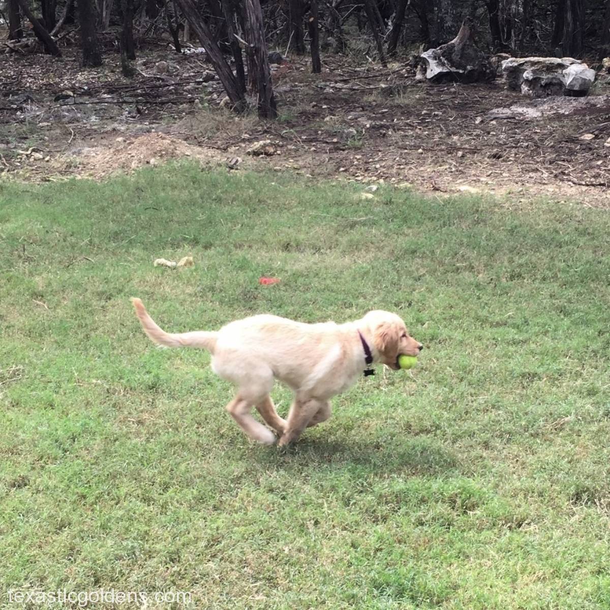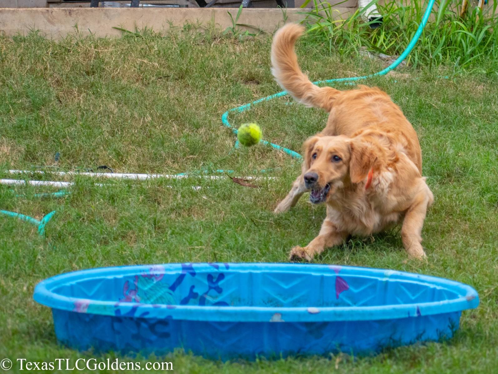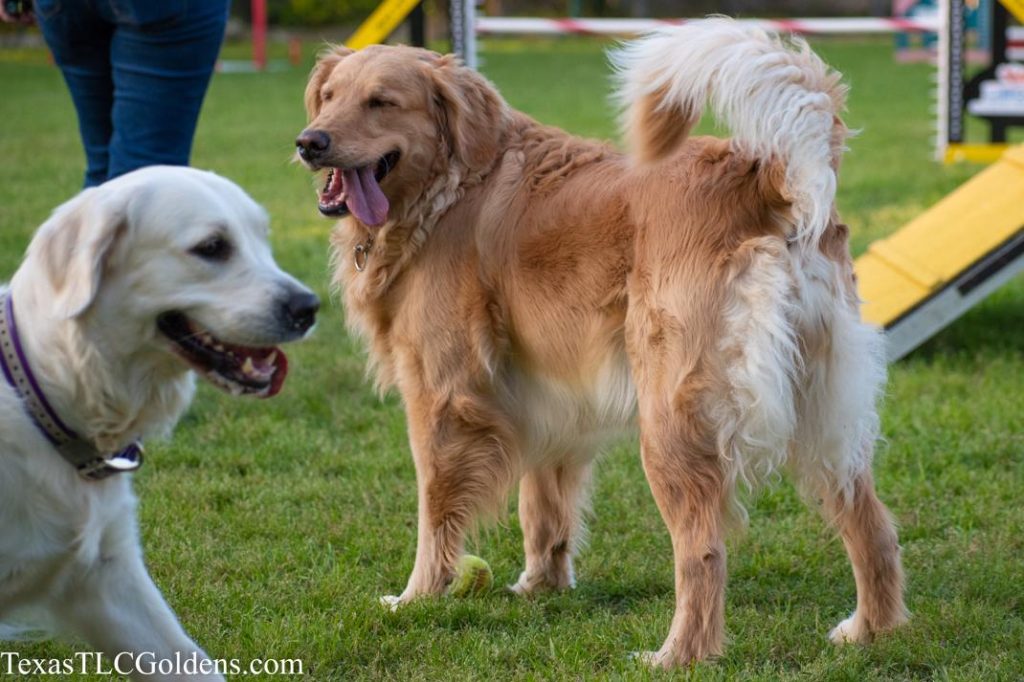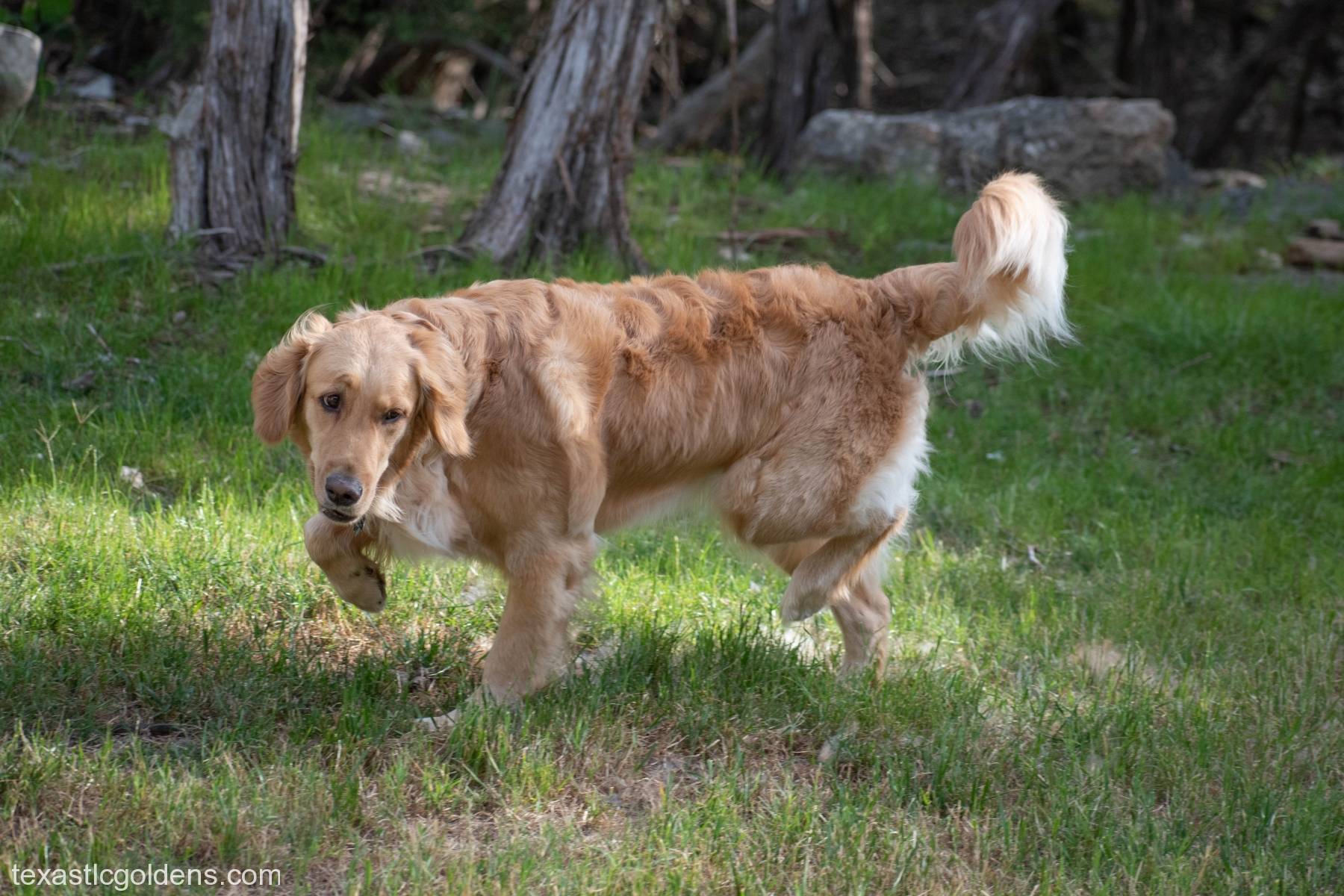 She is genetically clear, has OFA hip, elbow, heart and eye clearances and has always remained healthy. She is athletic and ball focused like no other dog we have ever seen; she lives to chase tennis balls. If it is cool outside, it’s unlikely the human throwing the ball will be able to last as long as she does. She still loves playing in the Texas heat but like any other long haired dog, she takes sensible breaks. She is very good at catching tennis balls in the air and in fact prefers that. If by chance she loses a thrown ball in the grass, it’s amazing to watch her automatically set up a search grid and find it by smell.