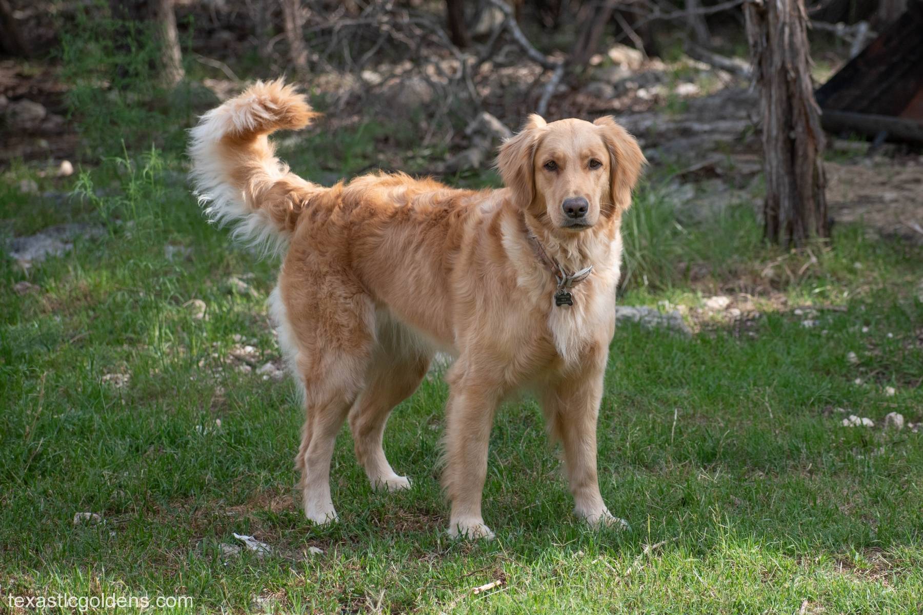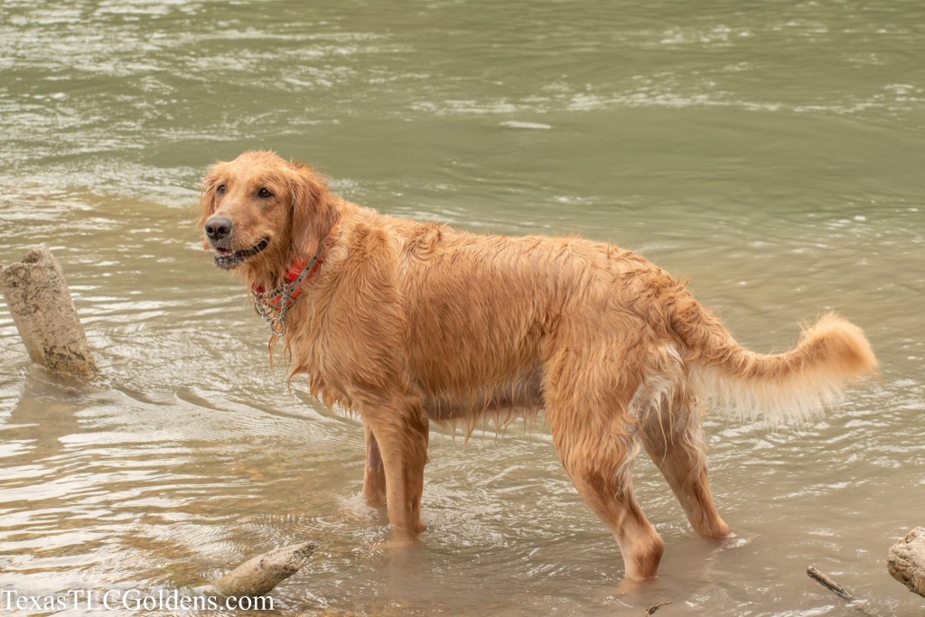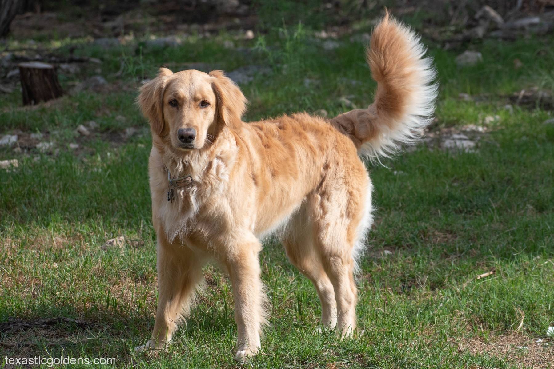 Harley came to us at two months old in October of 2016 along with her brother River. She was from the beginning very loving, intelligent and inquisitive. She earned the AKC “Canine Good Citizen” title at 14 months old. She grew into an amazingly beautiful girl with a nice shade of medium golden wavy hair and beautiful light (some would say white) highlights.
