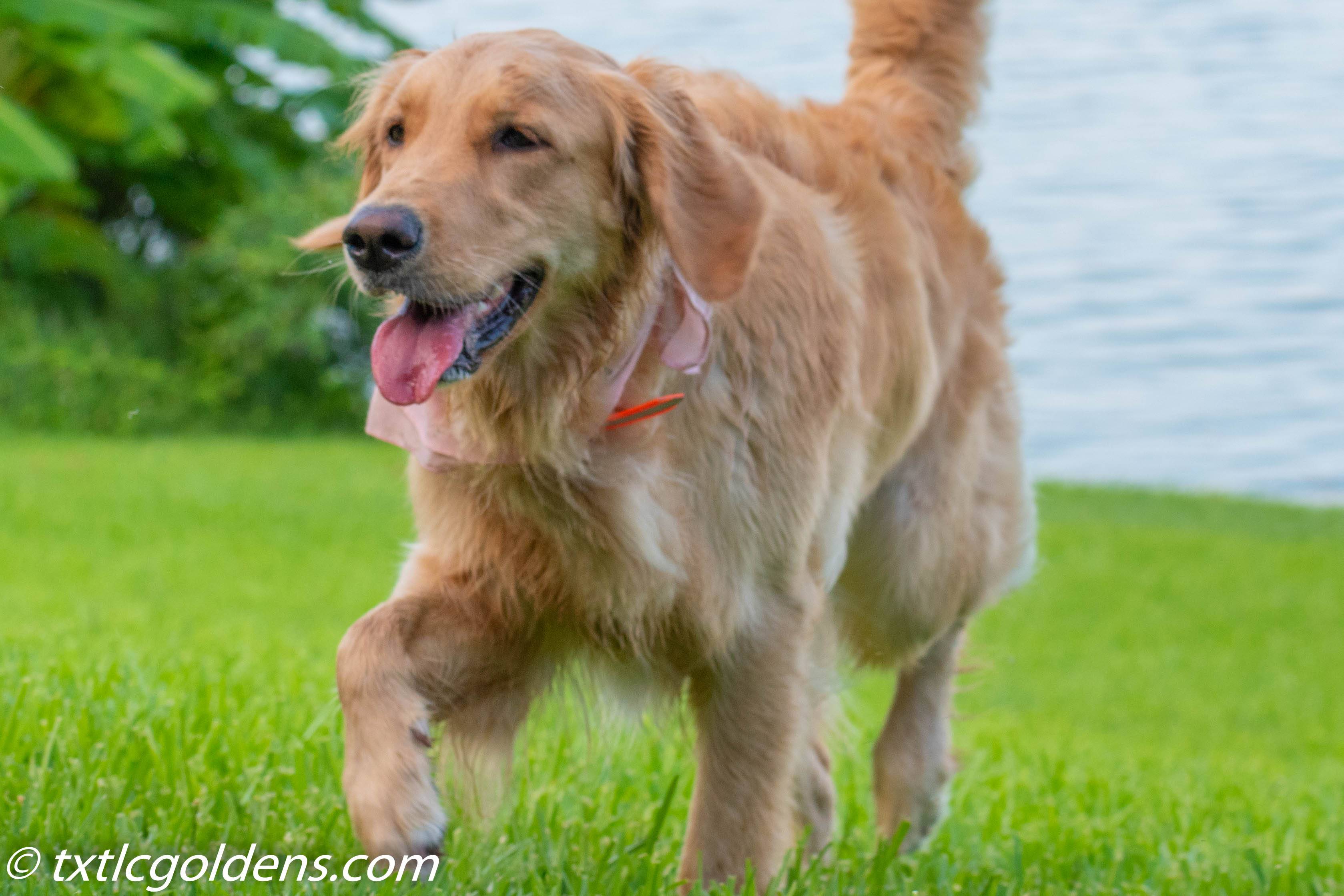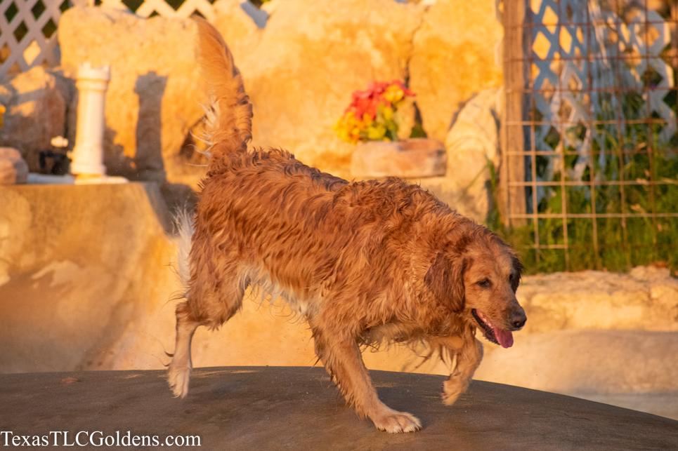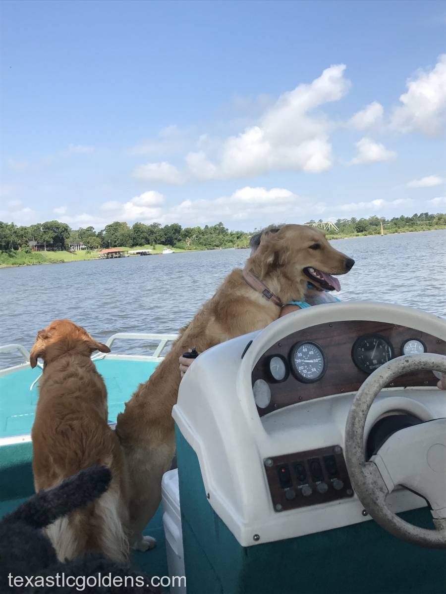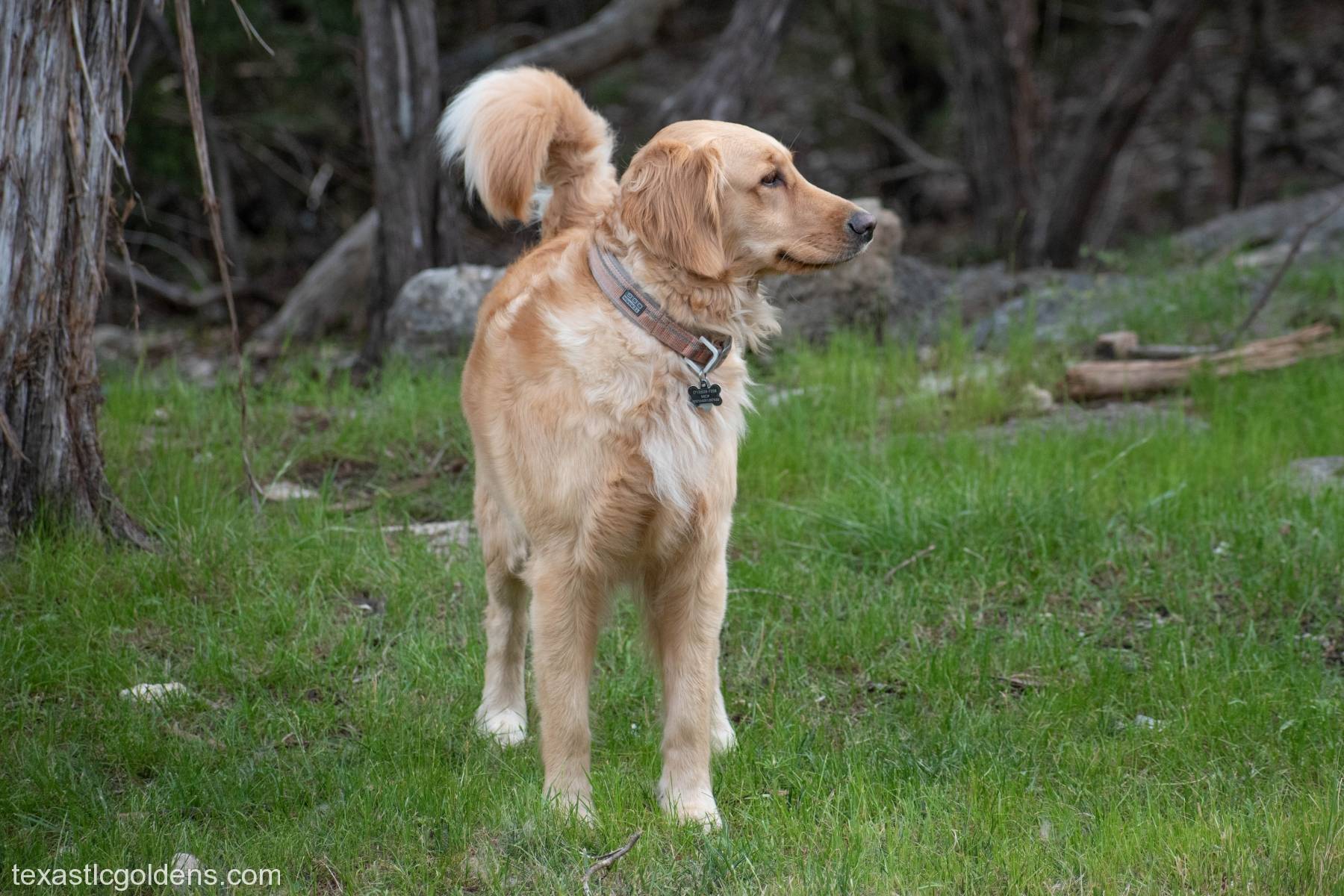 Harley came to us at two months old in October of 2016 along with her brother River. She was from the beginning very loving, intelligent and inquisitive. She earned the AKC “Canine Good Citizen” title at 14 months old. She grew into an amazingly beautiful girl with a nice shade of medium golden wavy hair and beautiful light (some would say white) highlights.