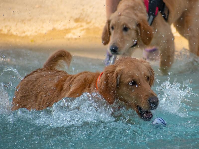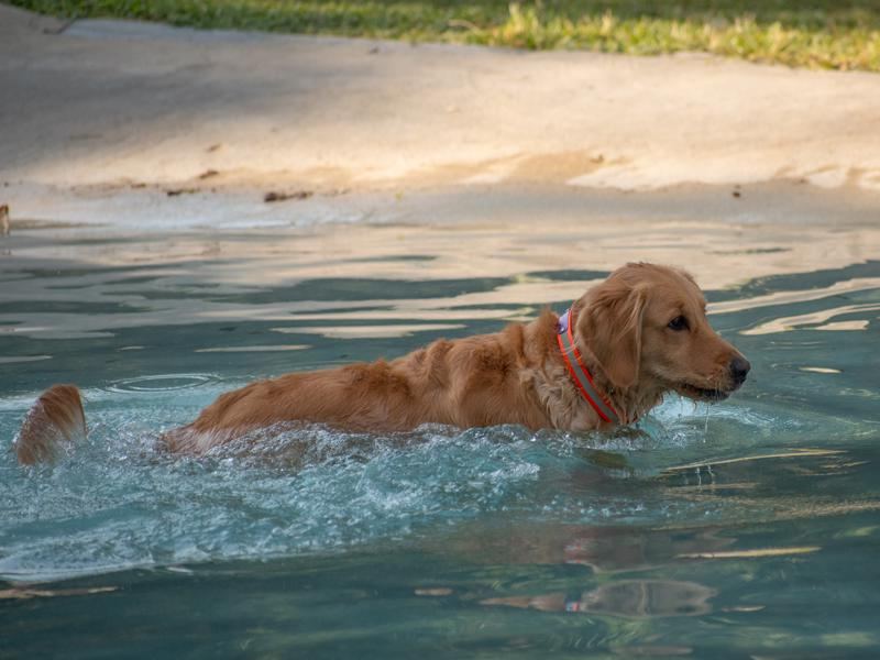 She loves going with us everywhere. She does really well in the car and loves meeting new people, especially children. She likes water and swimming but mostly she likes retrieving tennis balls in the water.