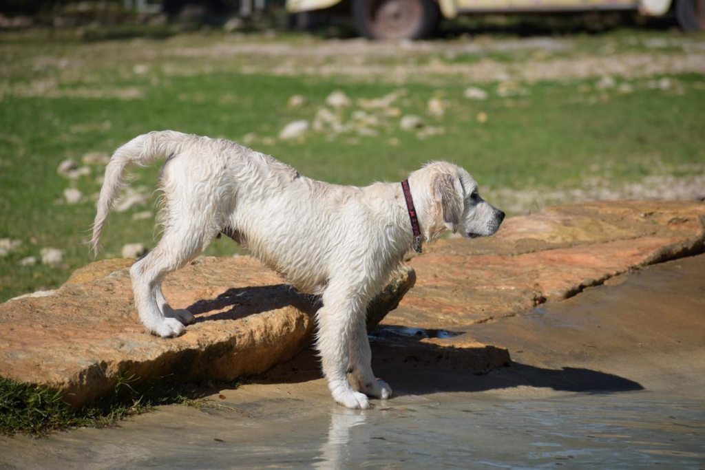 Ryder was born August 1, 2019 and is a gorgeous “English Creme” Golden Retriever with fully European bloodline that has show champions at almost every leaf of his family tree going back at least 5 generations. His parents are not only show winners, they are clear for the entire DNA panel (including Icthiosys which is rare for Europeans) and have very good hips. His father scored 90% on Pinnhip and his mom scored 70%. Both of those scores are truly outstanding. We plan to do OFA testing for hips and elbows when he is old enough but we are confident of a really good score.