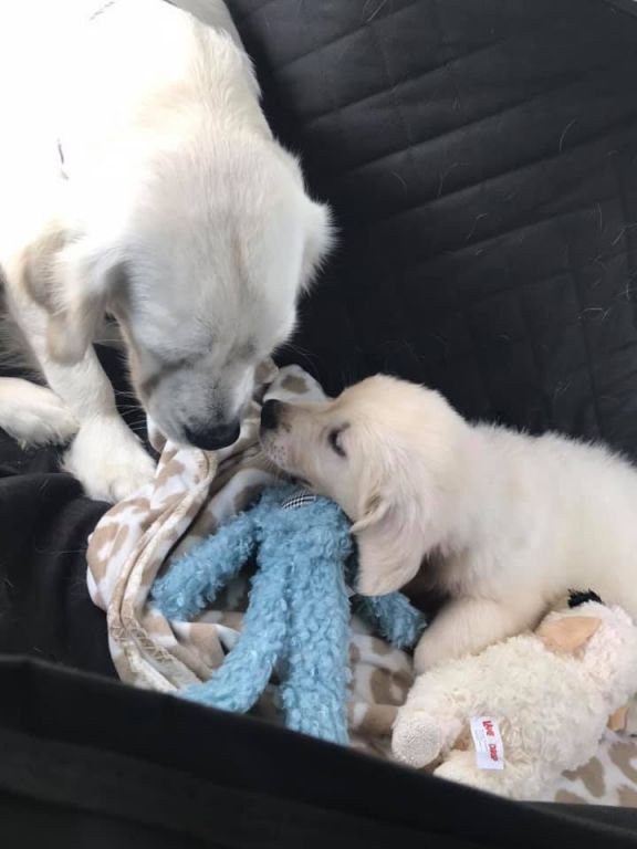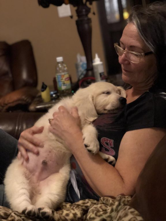Ryder us our “English Creme” Golden Retriever sire and proven for stud services. On 8/30/2020, Ryder and our Emma delivered two absolutely amazing puppies. The fact that there were only two was our fault in that we were late getting them together. A bitch’s ovulation cycle is only 4 to 5 days and we estimated wrong. Even so, their puppies were gorgeous, smart, loving puppies that have since gone to wonderful, loving forever homes.